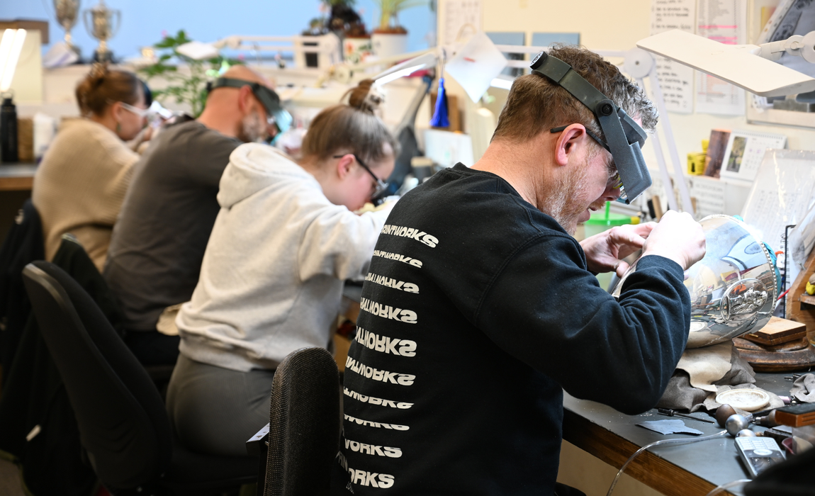 Aside from the immediate support and community, we found that just being physically based in the Goldsmiths’ Centre helped us grow. The kind of foot traffic that comes through – clients, other craftspeople, industry figures – it’s a real hub. We got new customers through word of mouth, recommendations from people within the building, and from visitors who just wandered in. It helps spread awareness of engraving, which is a dying art, and creates opportunities that we never could have predicted. It also helped us identify a big gap in the trade: you just don’t find many engravers nowadays.