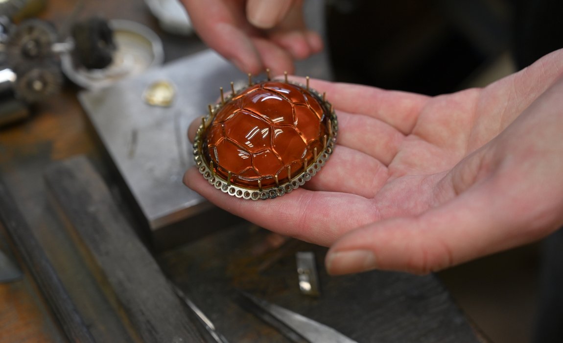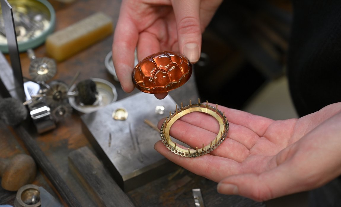 Right now, I’m working on a tortoise brooch, which has a moving head and a large citrine in the middle. It’s probably the biggest and most complex piece I’ve worked on so far. I’ve been doing most of it myself, though Alex, who sits next to me, has been helping and guiding me along the way. There’s no strict deadline, but I started it before Christmas, so it’s taken quite a while. The feet and head are wax-carved, so once they’re cast, it’ll be a matter of assembling everything and soldering it together. Hopefully, it’ll be finished in the next few weeks.