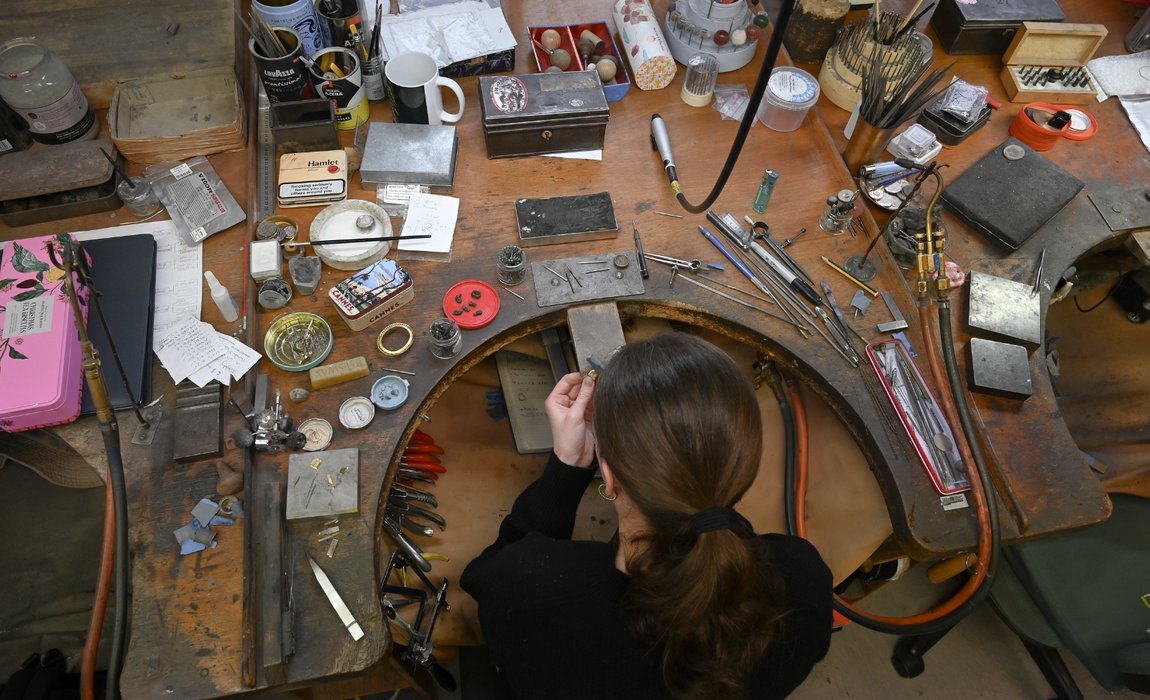 For many aspiring young jewellers, finding the right path into the trade can be a challenge. The Goldsmiths' Centre’s Jewellery Foundation Programme offers a vital stepping stone, introducing students to traditional craft skills and helping them discover where their passions lie. Blythe Jolley Ellis is one such student who turned burgeoning creativity into a career. After discovering jewellery making during lockdown, she applied for the Foundation Programme and quickly realised this was the industry for her. Now an apprentice diamond mounter at fine jewellers E. Wolfe & Co, Blythe is honing her craft in one of London’s historic family-run Hatton Garden workshops, alongside former Foundation Programme trainee and Goldsmiths’ Company apprentice Alexander Wood.