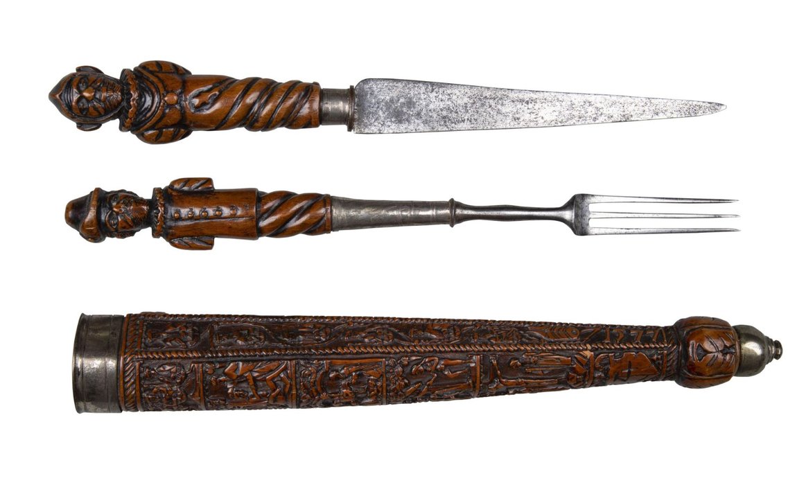 Drawing from the historic collections of the London Cutlers’ Company and the Goldsmiths’ Company, alongside works by modern and contemporary makers and silversmithing businesses, The Culture of Cutlery celebrates the extraordinary range of form and function found in these tools of consumption. Tracing the journey from the personalised knives and spoons of the medieval period, often carried by their owners, to the boundary-pushing innovations emerging today, the exhibition reveals cutlery as a site of continuous experimentation of materials, techniques and creativity. Exhibits will be presented against the backdrop of Timorous Beasties Disappearing Damask wallpaper, alluding to the culture of fine dining in which many of the sets of cutlery on view were used.