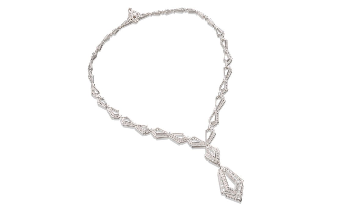 Joshua Hook’s Infinite Geometry necklace tackles engineering challenges that demand careful spatial understanding. The piece comprises of 30 links – all handmade, a box catch and two pendants, one of which is detachable and Josh’s style leaves no room to hide with accuracy and symmetry required from every section. Josh won a Gold Award in 3D Craft for diamond mounting and the Theo Fennell Apprentice and Master Award for his Masterpiece which was created in the final year of his apprenticeship with Dominic Walmsley.