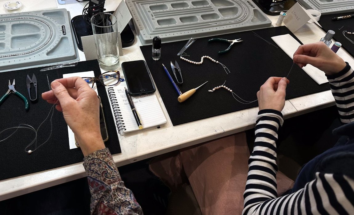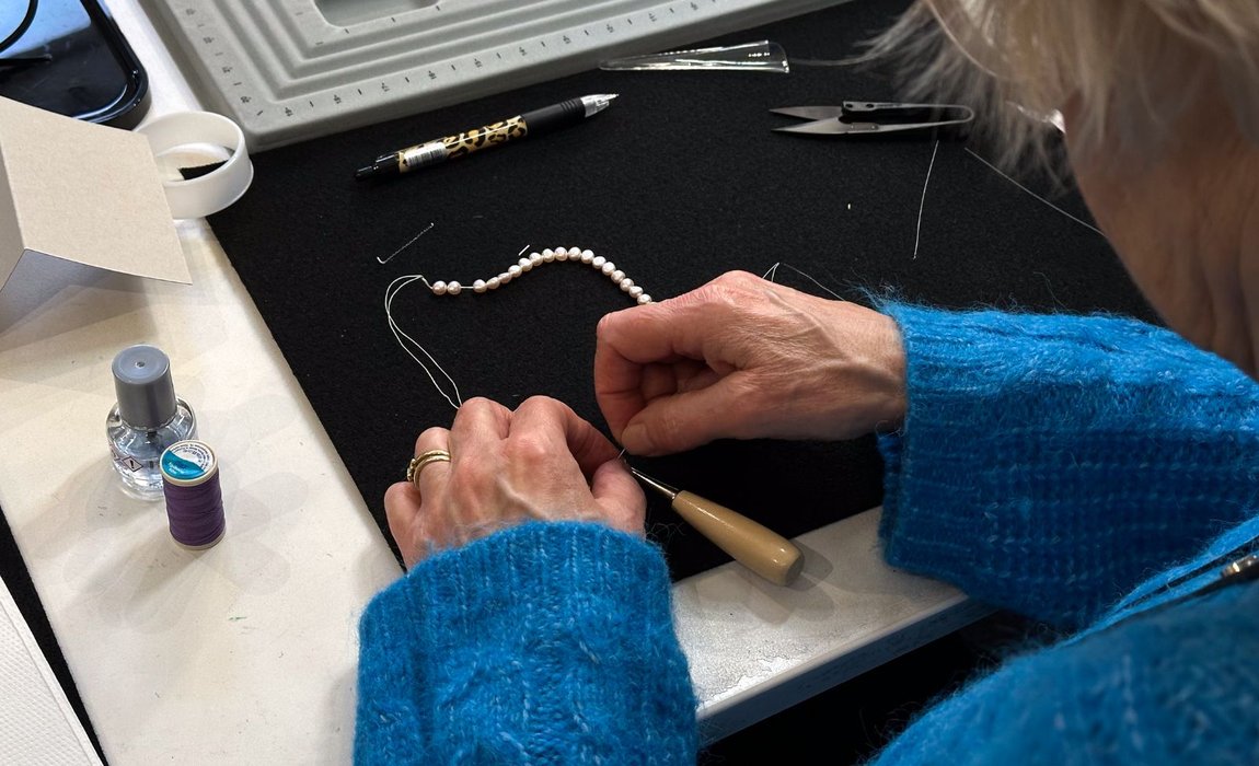 Our small class size offers you the chance to get group as well as individual guidance and 1:1 time with your tutor, allowing you to receive tailored advice to deepen your knowledge and understanding of the pearl stringing process.